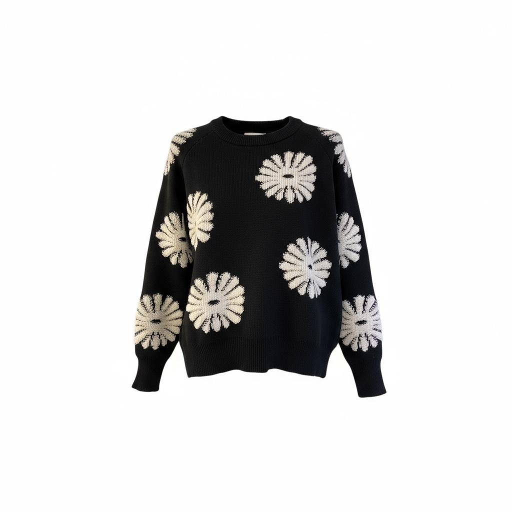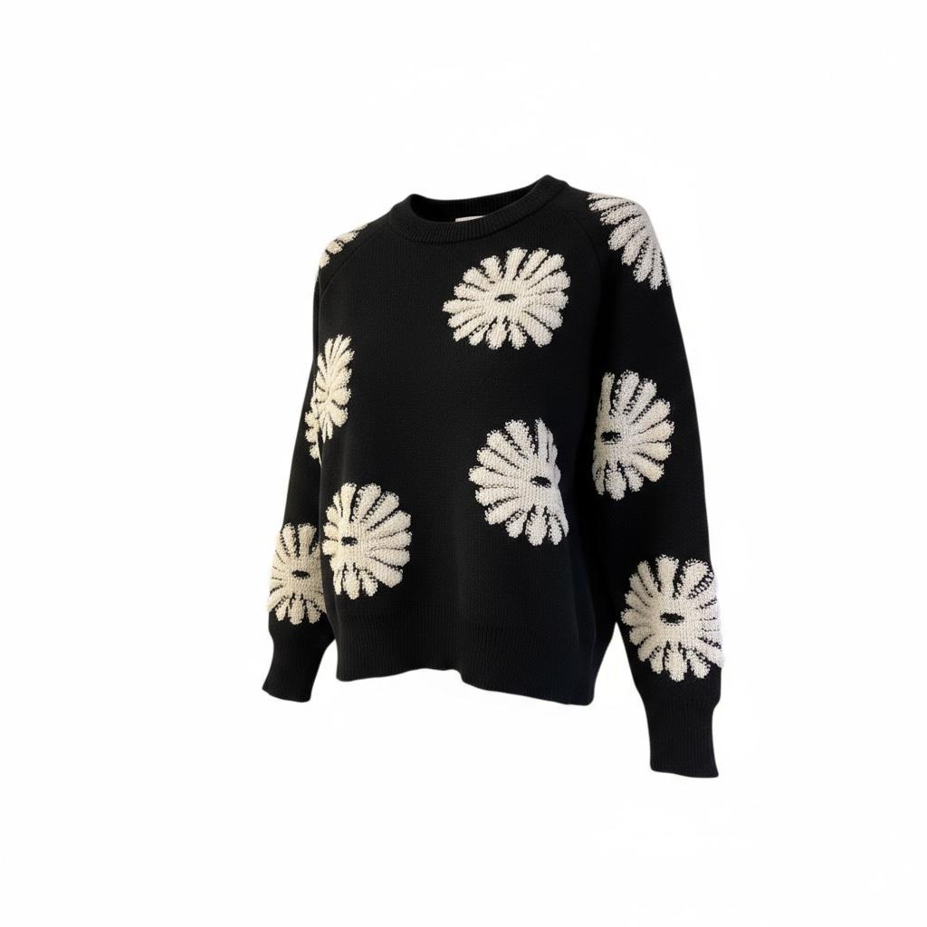 Un pull douillet et raffiné, orné de broderies florales pour un style unique et chaleureux.
