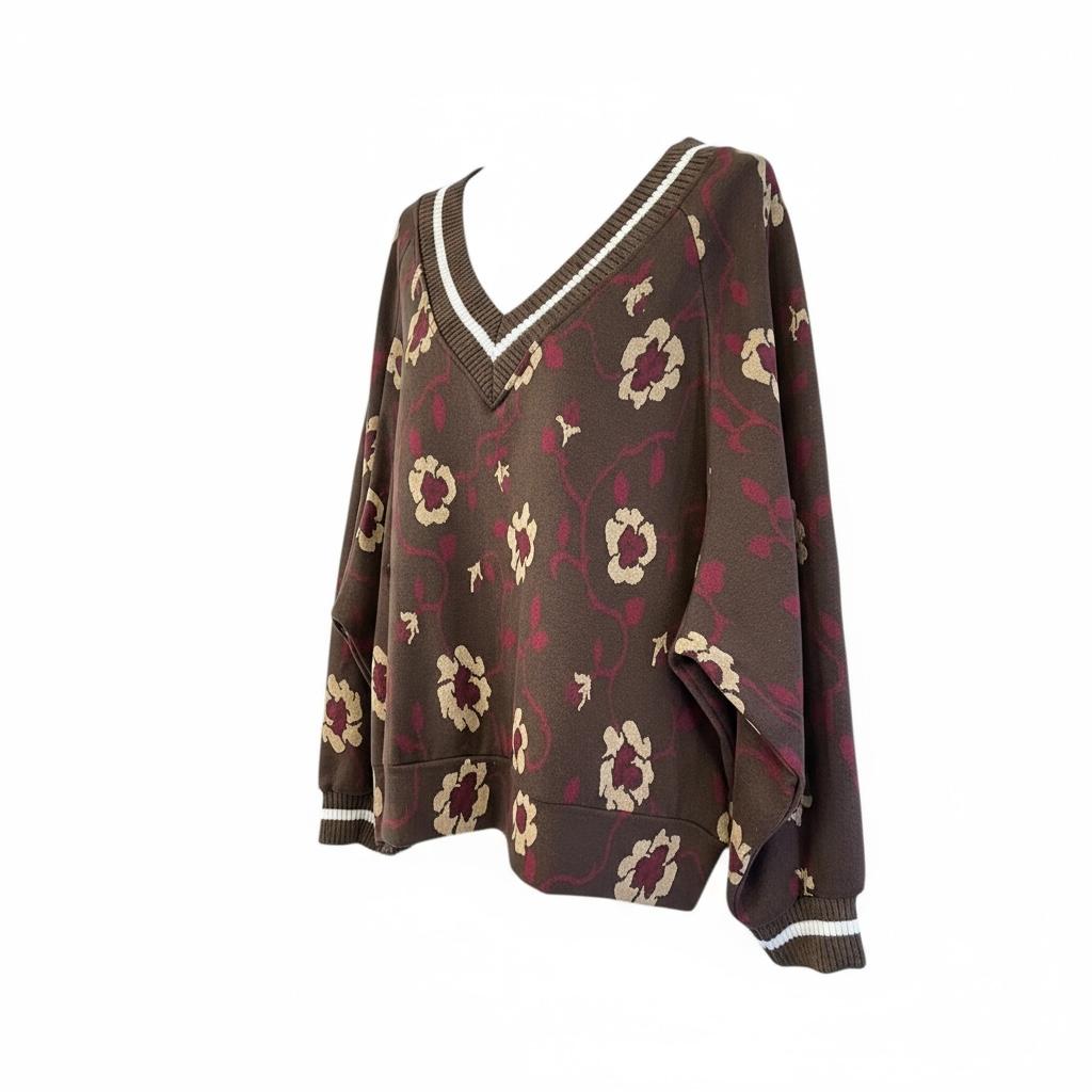 Pull floral marron
