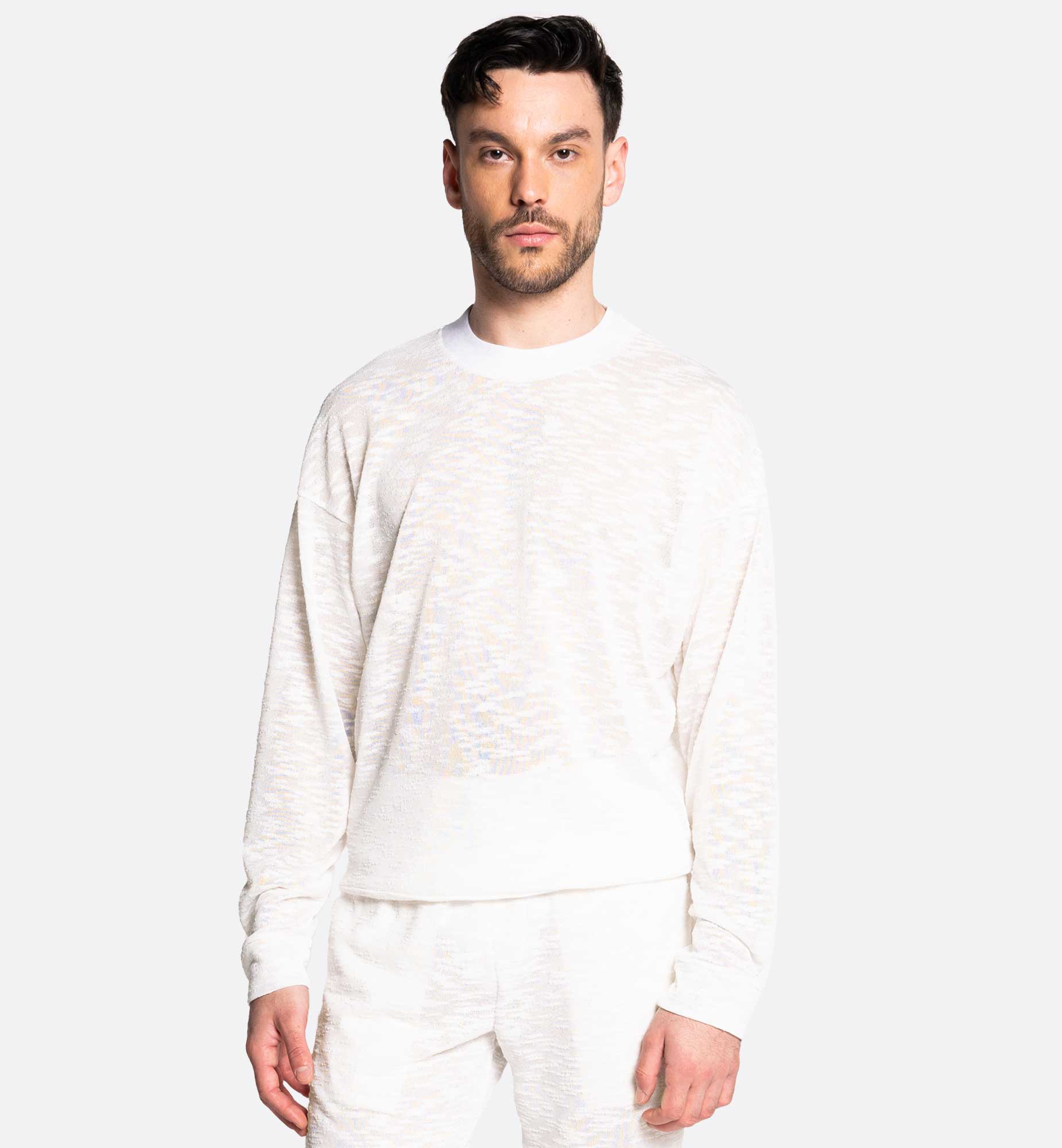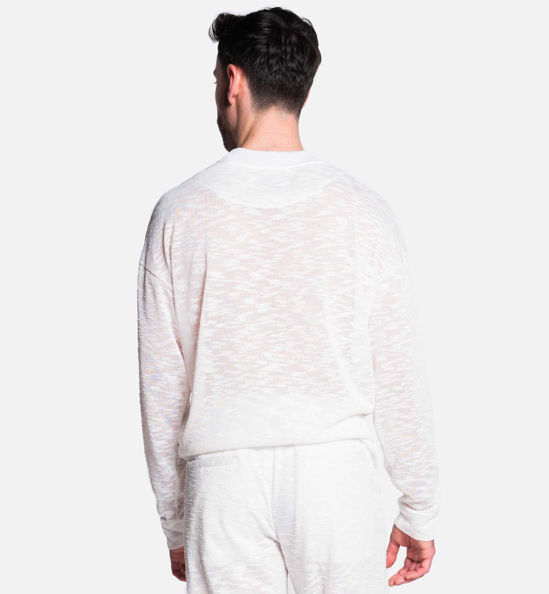 PULL RAS-DU-COU BLANC CASSÉ EN MAILLE TISSÉ