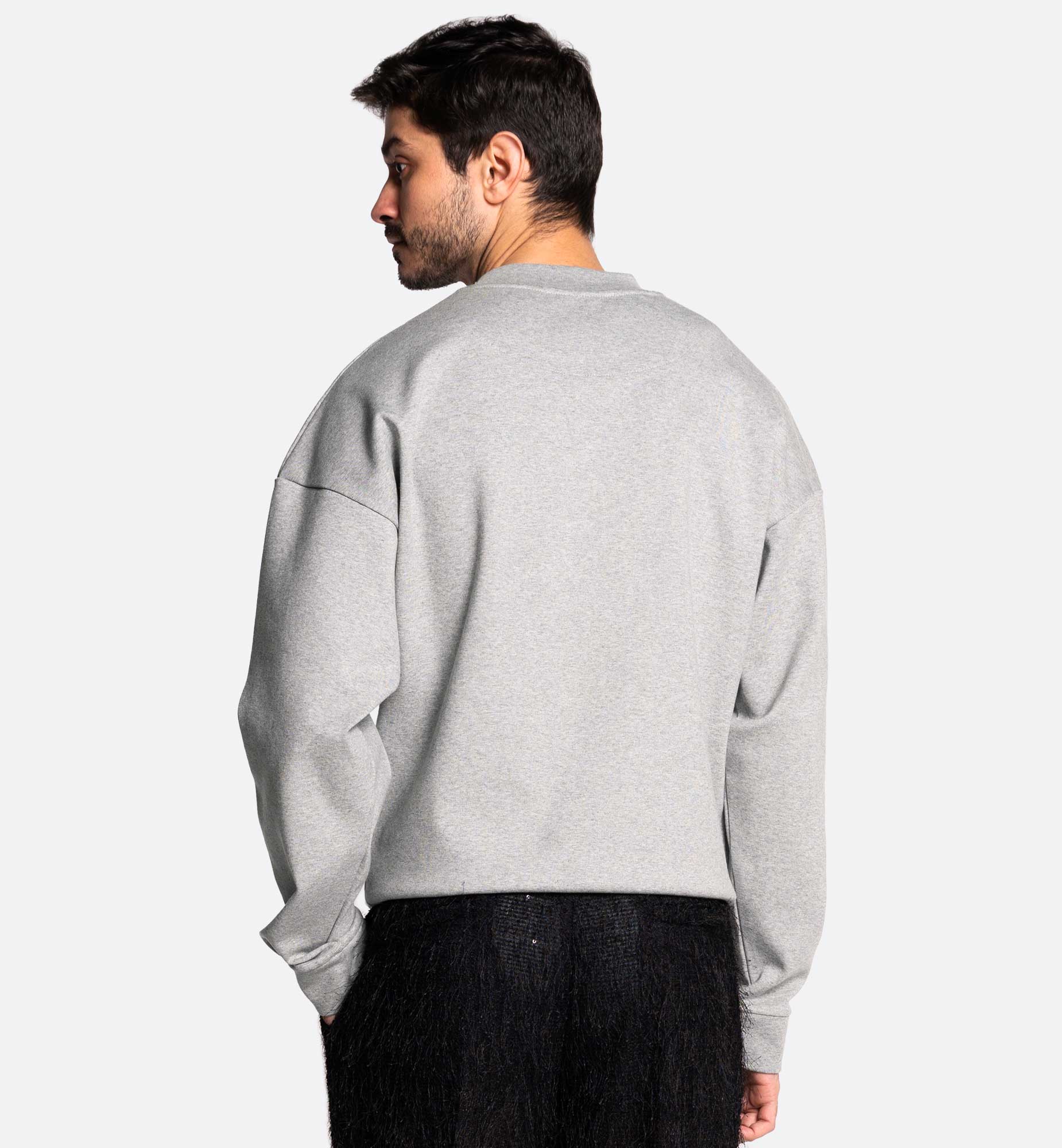 PULL RAS-DU-COU GRIS EN VISCOSE AVEC BRODERIE DEVANT