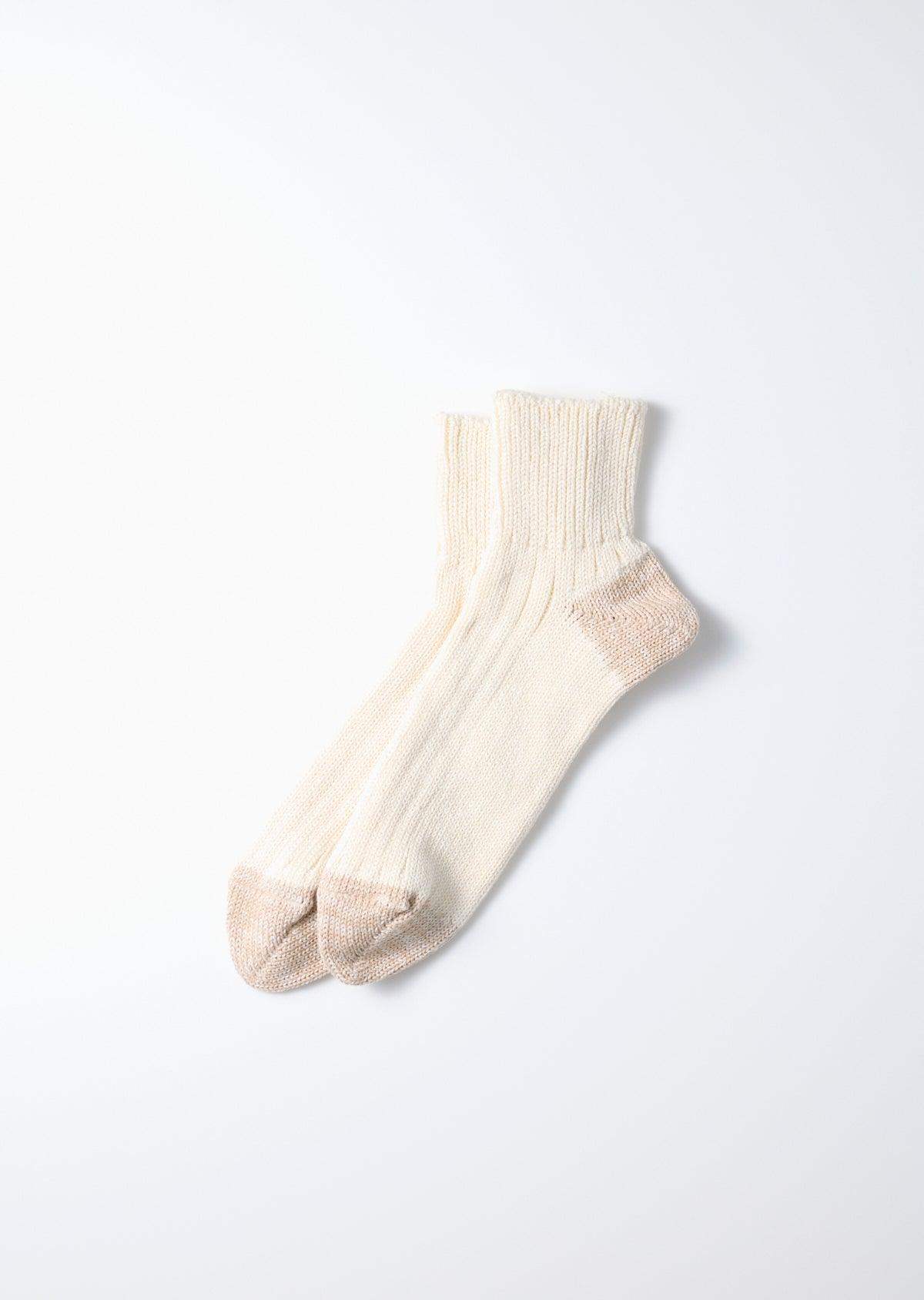 Les chaussettes Rototo R1606 en coloris Ivory incarnent l’essence du savoir-faire japonais en matière de bonneterie. Confectionnées dans la préfecture de Nara, réputée pour sa tradition textile, ces chaussettes associent des matériaux de qualité à une fabrication artisanale. Le mélange de lin et de coton offre une texture respirante et douce, idéale pour un usage quotidien.
