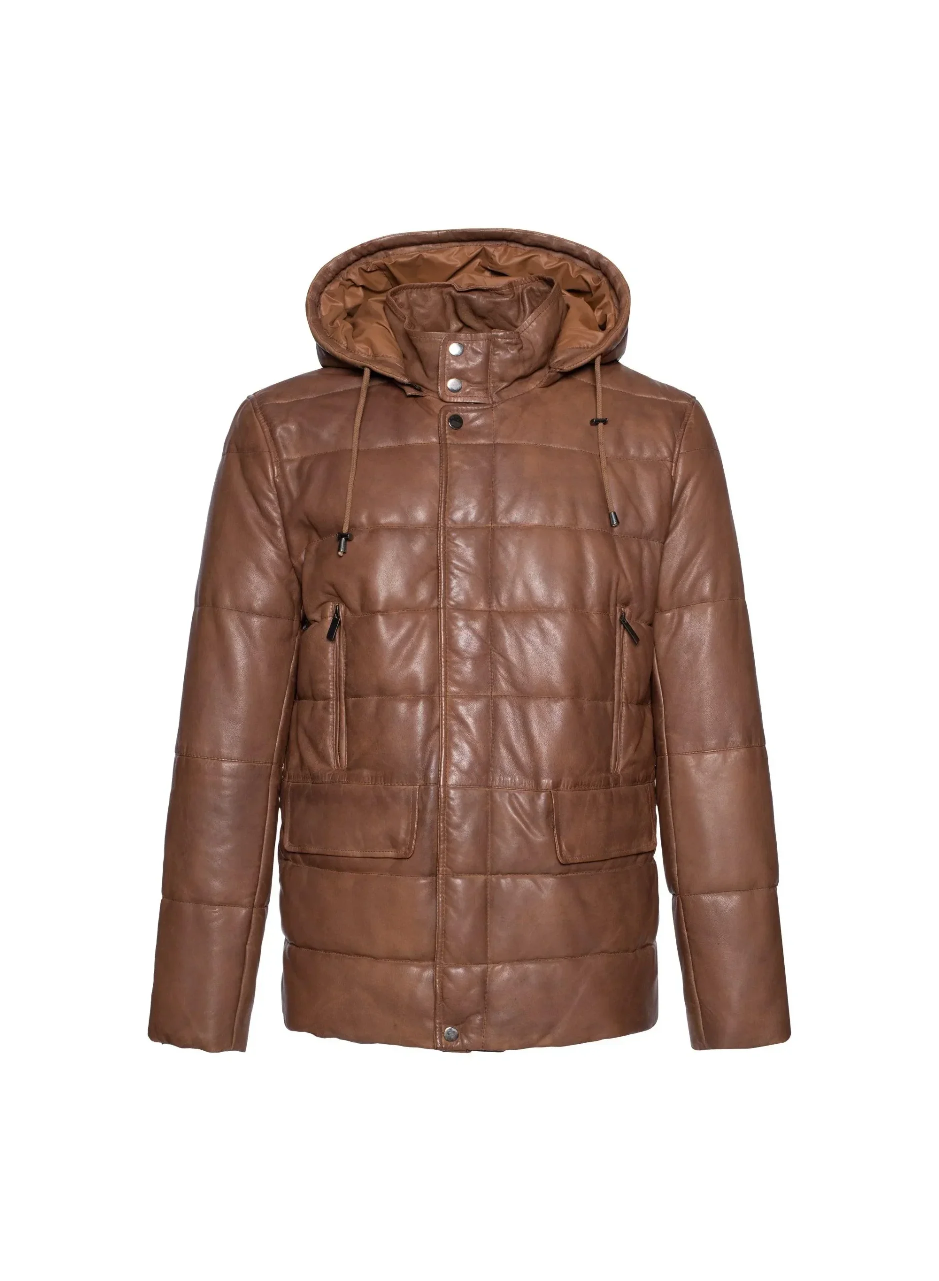 Regency – Clifton – Manteau à capuchon de cuir doublé – Cognac