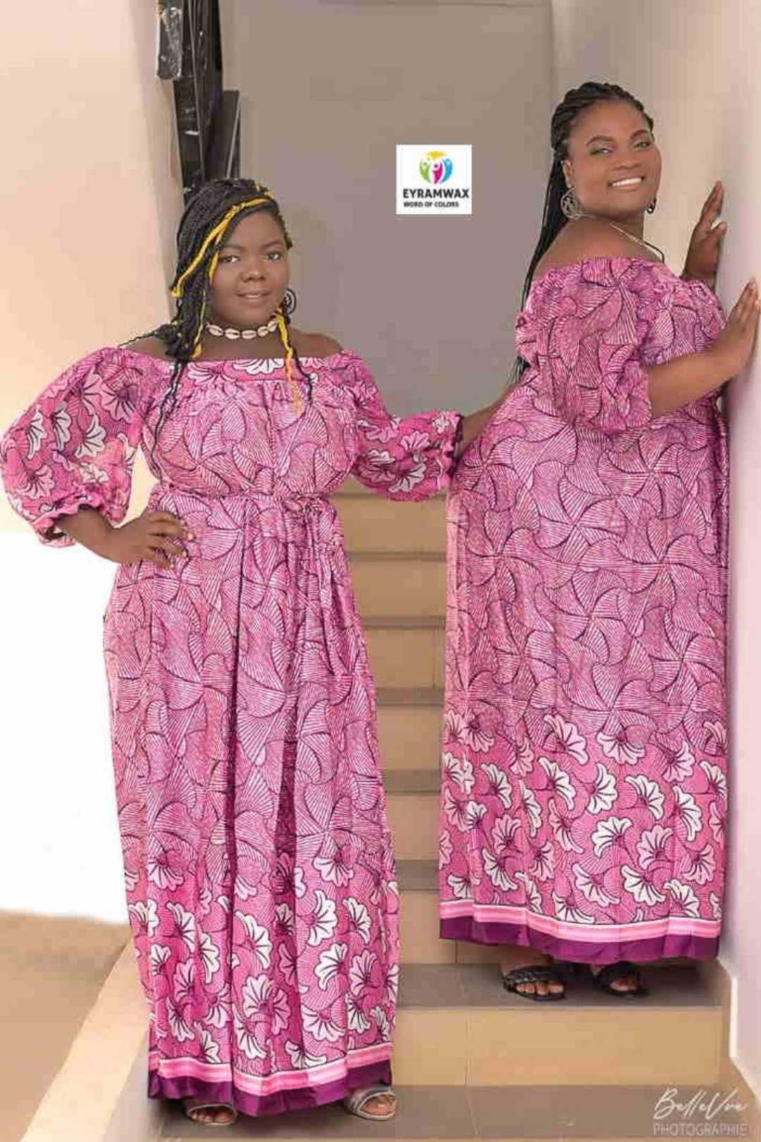 Bel ensemble d’inspiration africaine deux pièces en soie et mousseline imprime