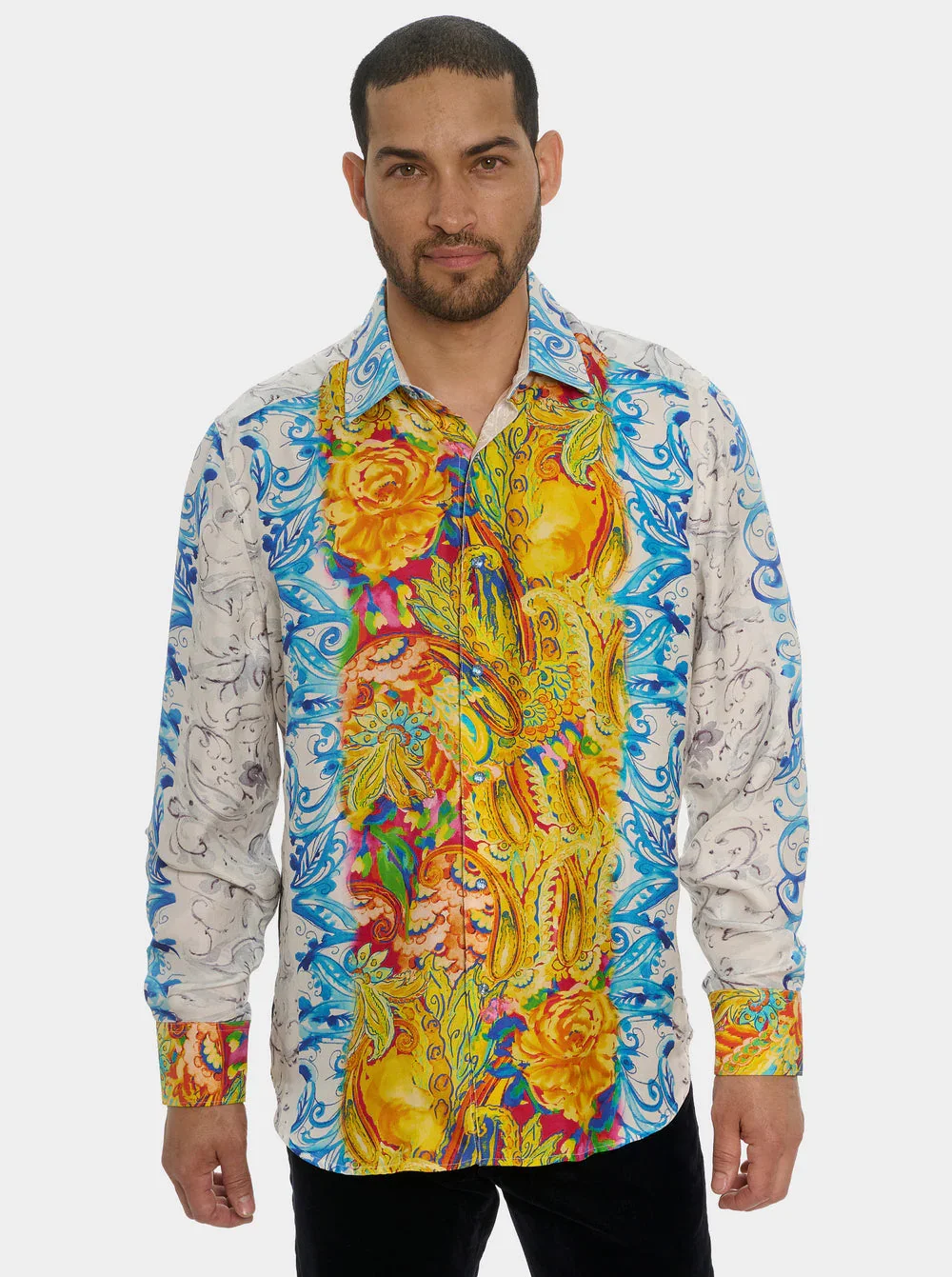 Chemise manches longues Robert Graham Édition Limitée Modèle: THE B HUDSON Édition Limitée Style: RF241653CF Le B Hudson est sûrement un régal pour les yeux. Cette chemise 100 % imprimée en soie présente un imprimé cachemire aquarelle sur toute la surface contrasté par un panneau lumineux et flamboyant au centre du devant. Retournez-vous et découvrez […]