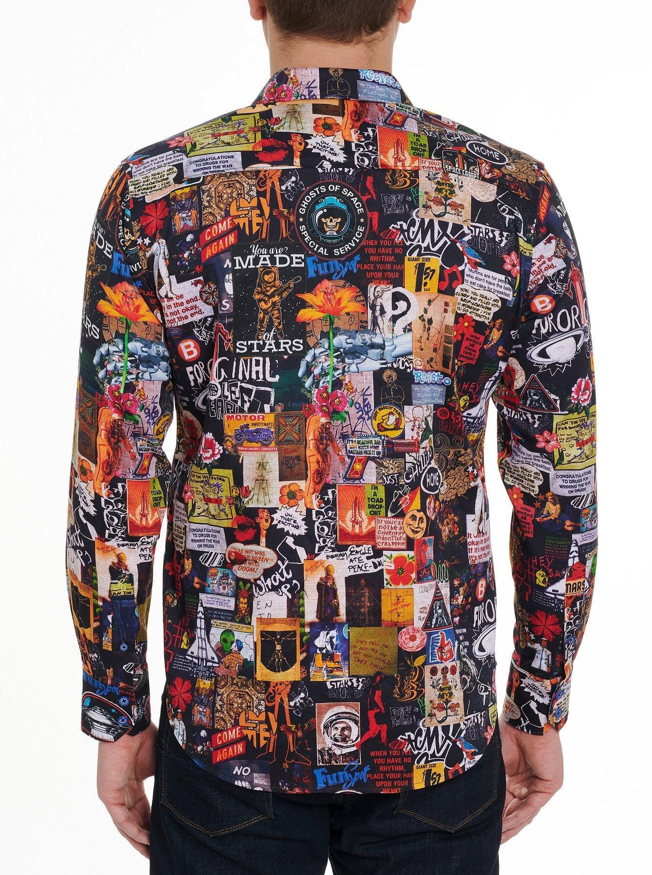 Les bandes dessinées de science-fiction du milieu du siècle prennent vie sur cette chemise de sport à manches longues en coton stretch. Laissez à Robert Graham le soin d’élever un visuel rétro en #WearableArt moderne
