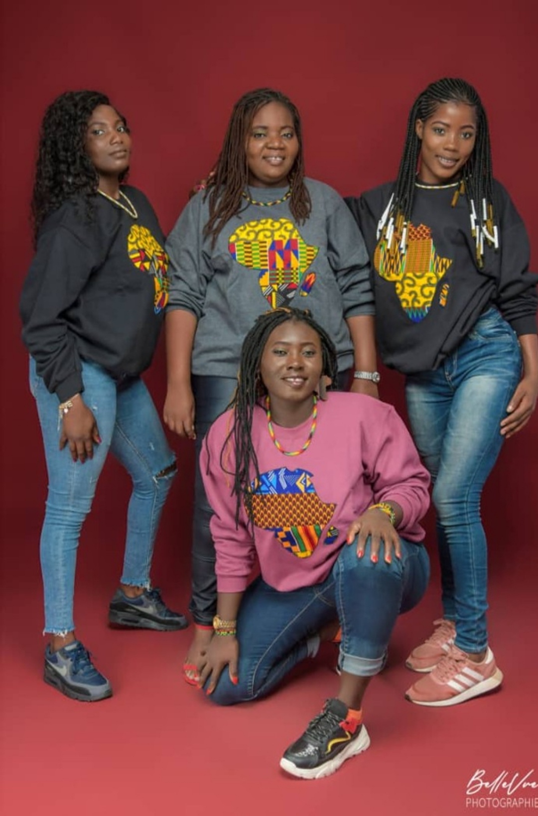 Nos pulls Unisexe sont agrémentés de touches de WAX, KENTE ou BOGOLAN au niveau des poches avant et des coudes.