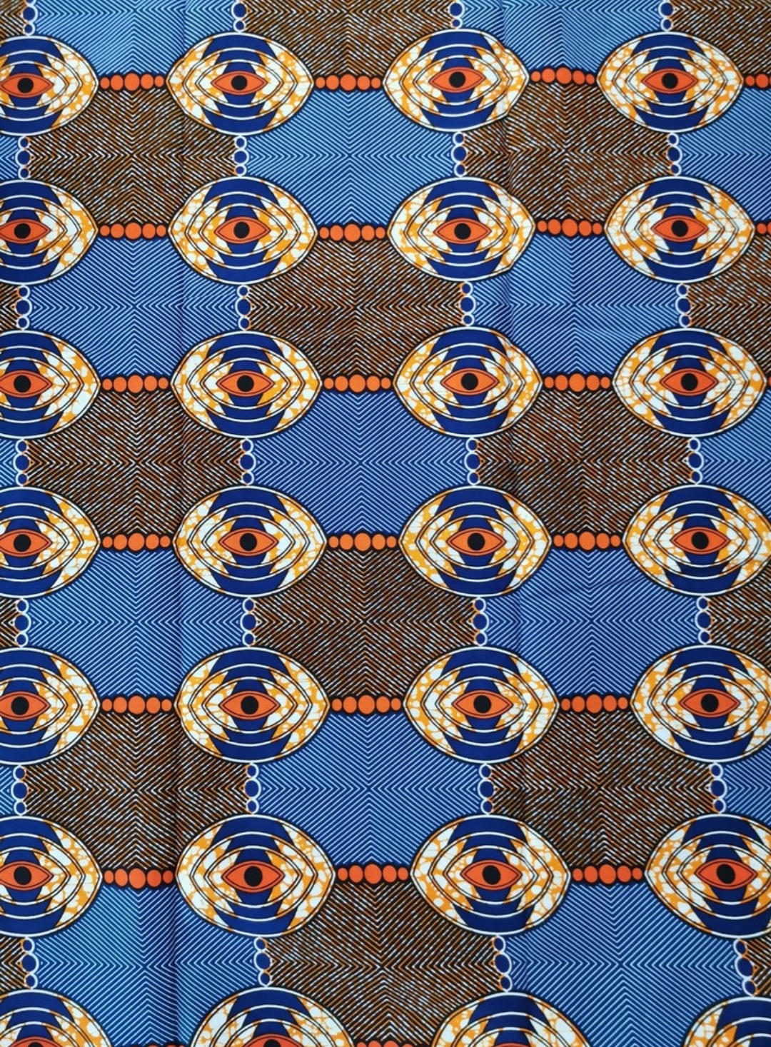 Tissu wax 100% coton. Avec une impression de très belles qualités et des couleurs vives, un design unique et dynamique.