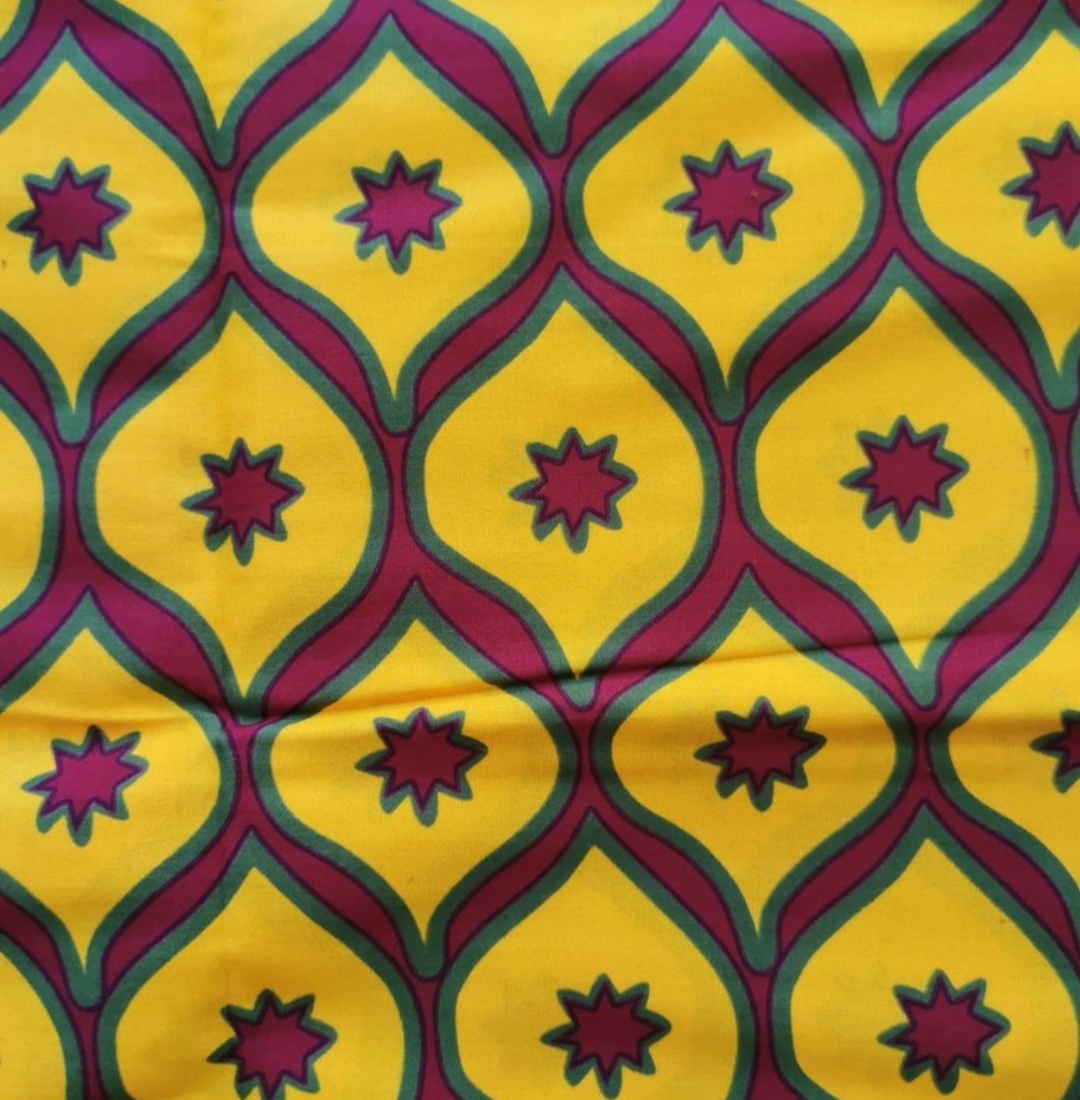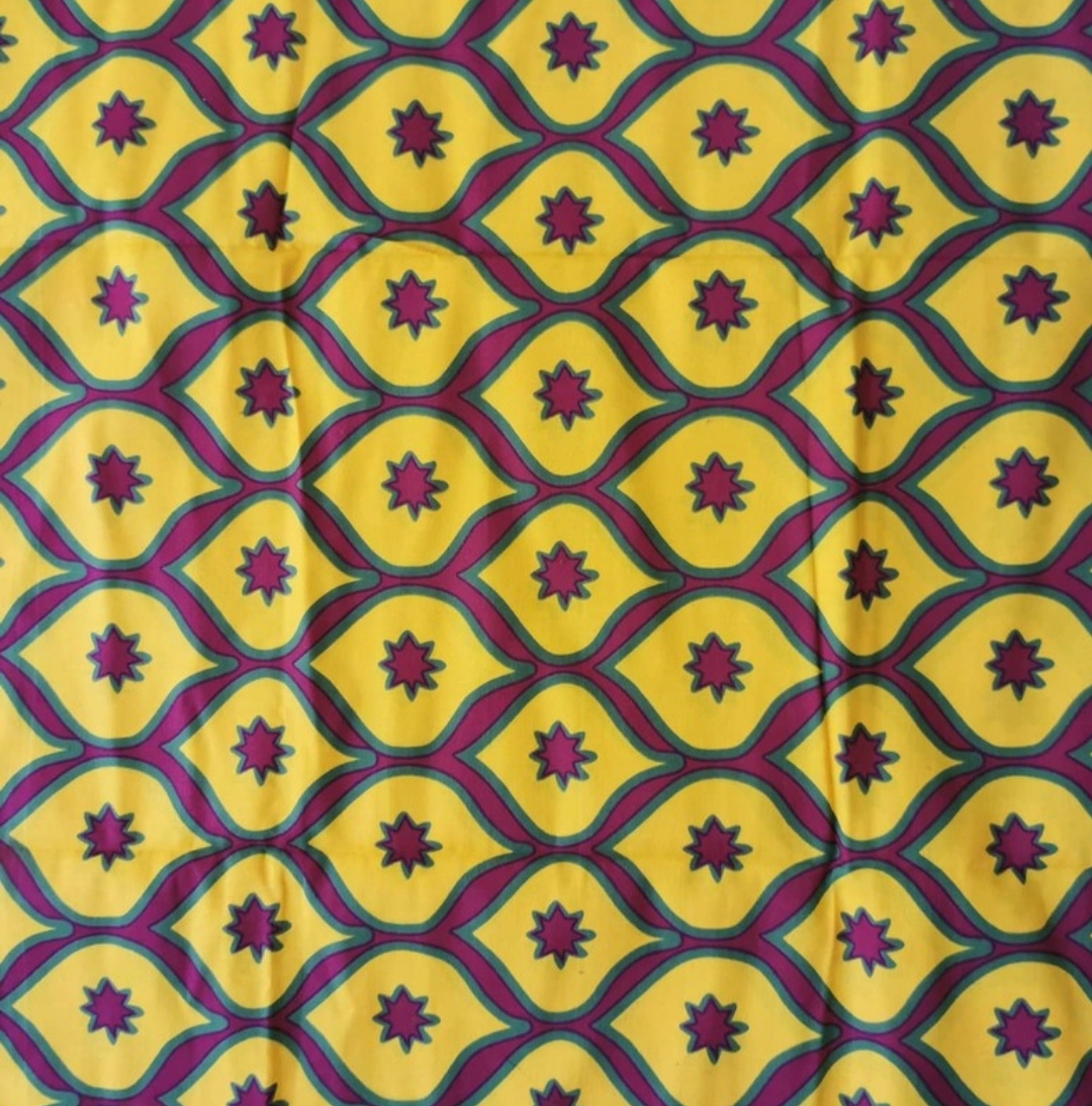 Tissu wax 100% coton. Avec une impression de très belles qualités et des couleurs vives, un design unique et dynamique.