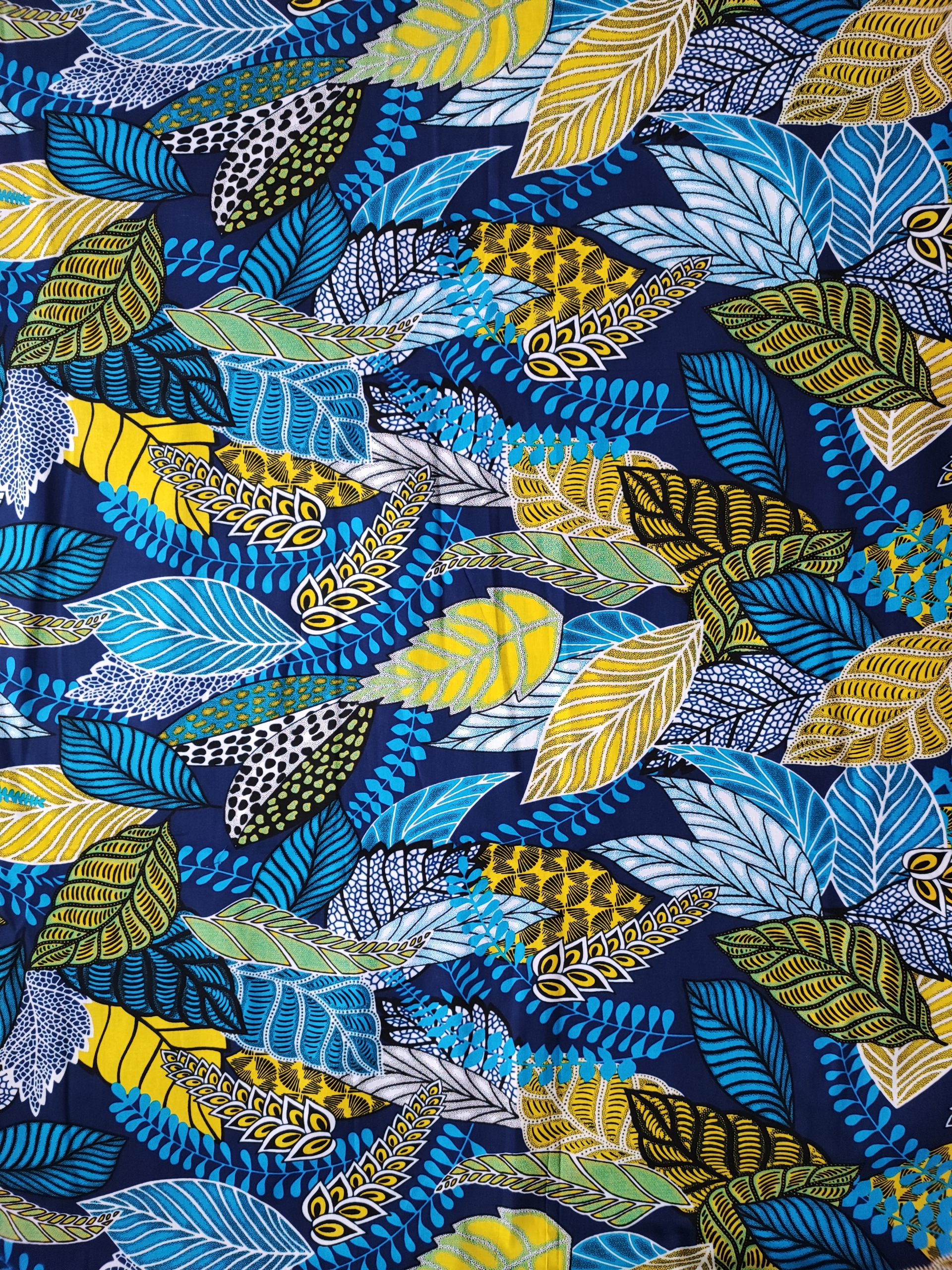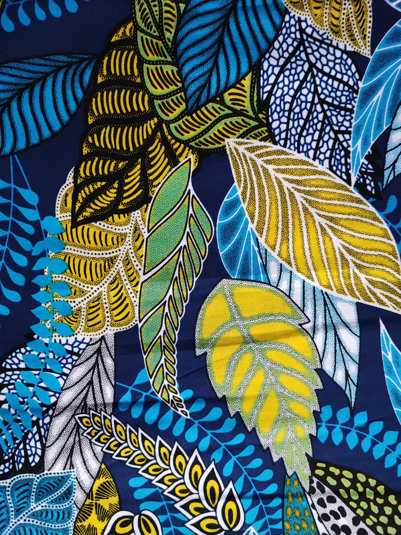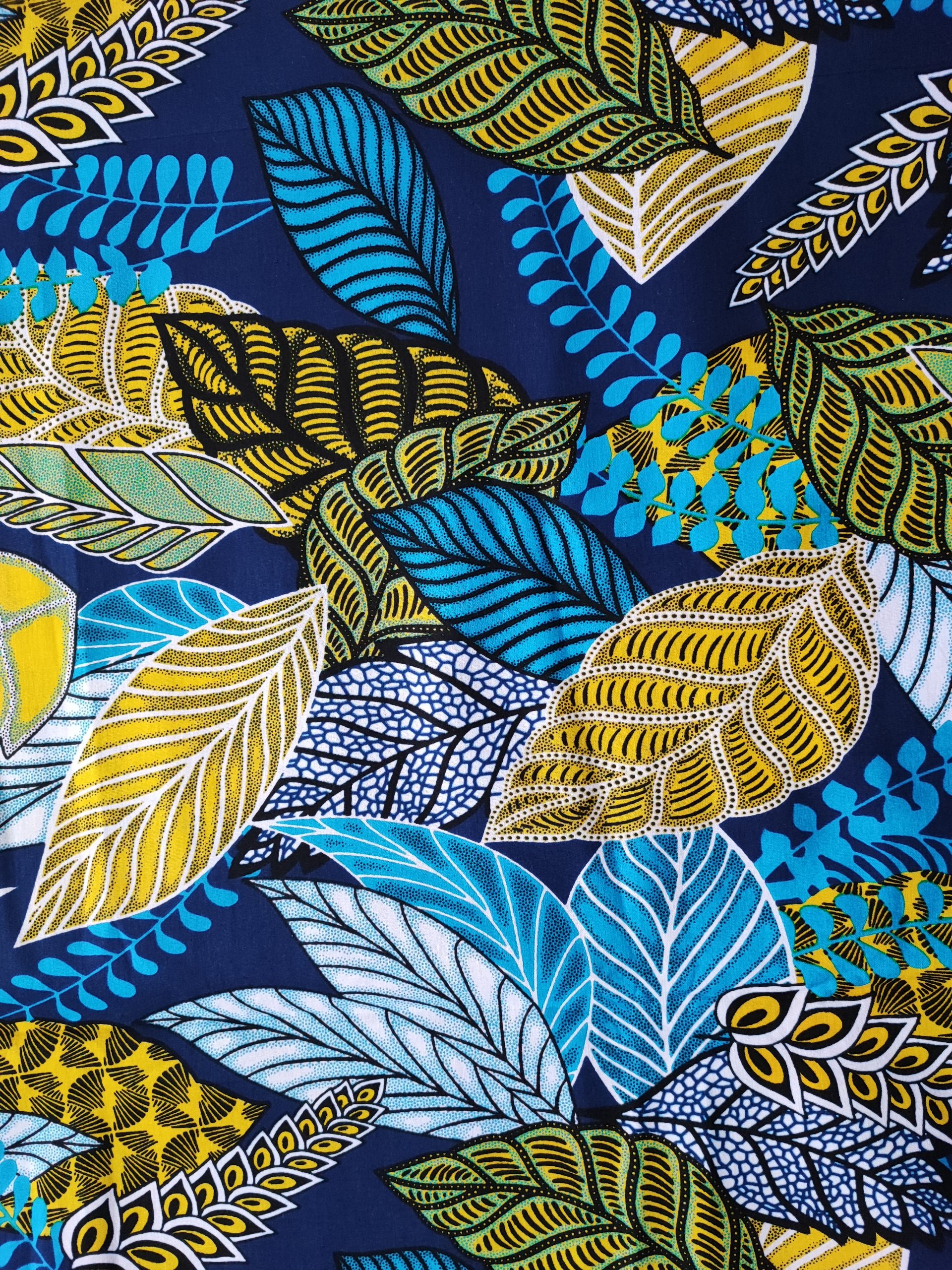Tissu wax africain, imprimé wax , coupon 100% coton motif feuille