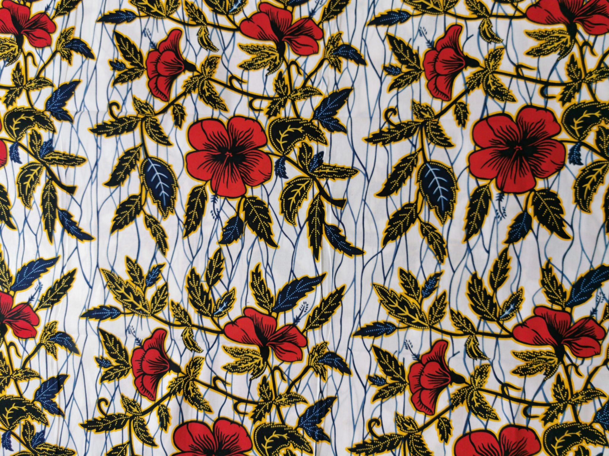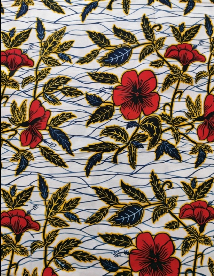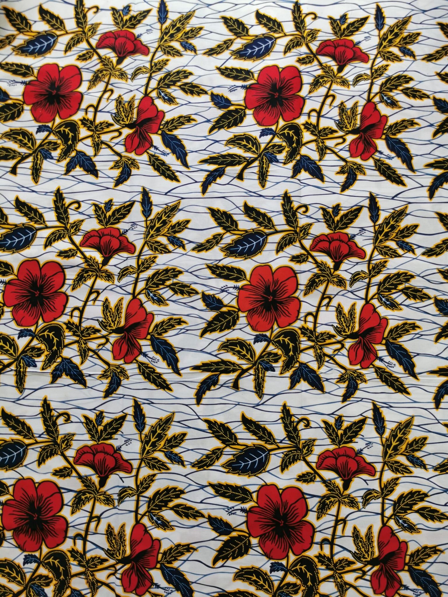 Tissu wax africain, imprimé wax, tissu 100% coton motif fleur d’hibiscus