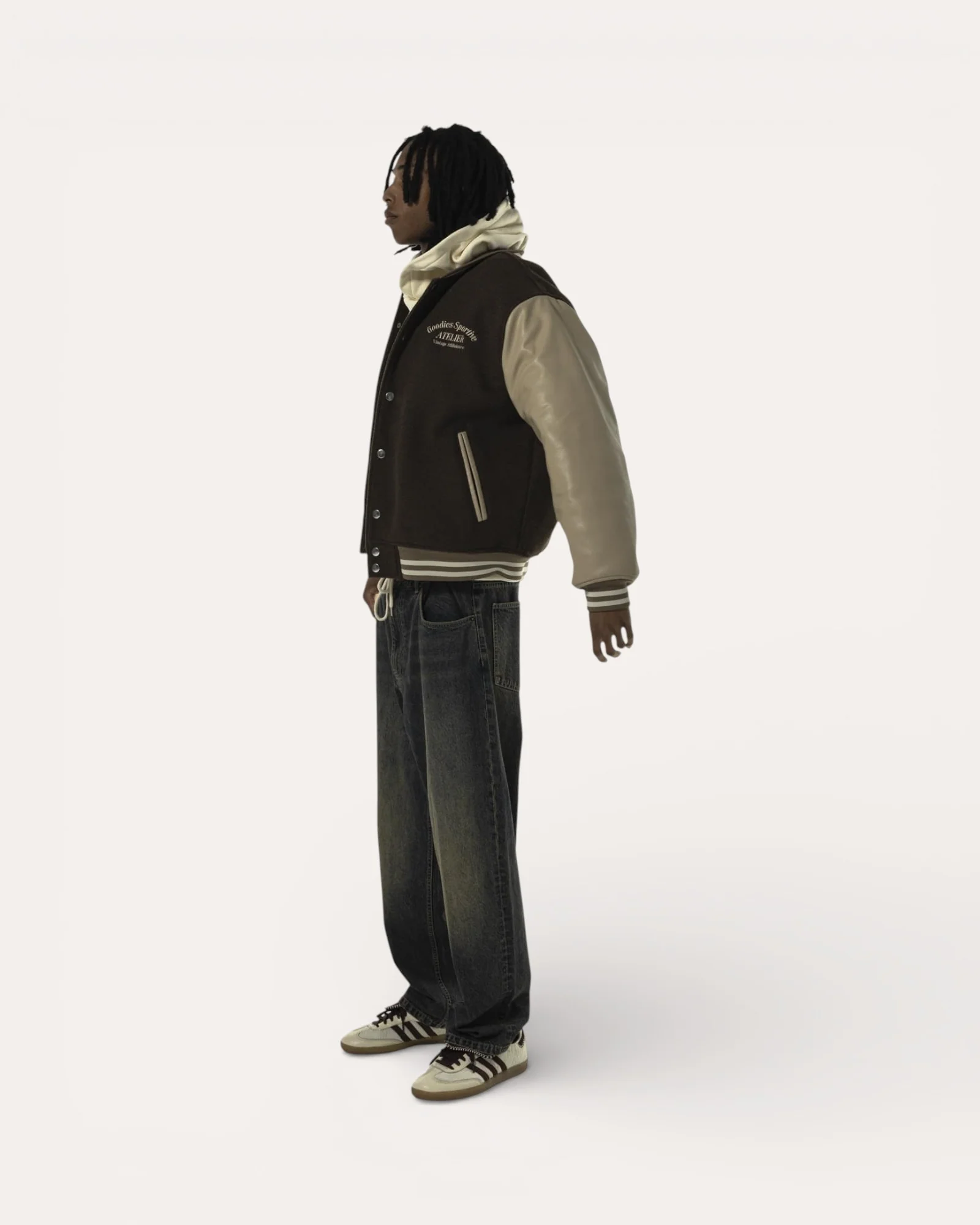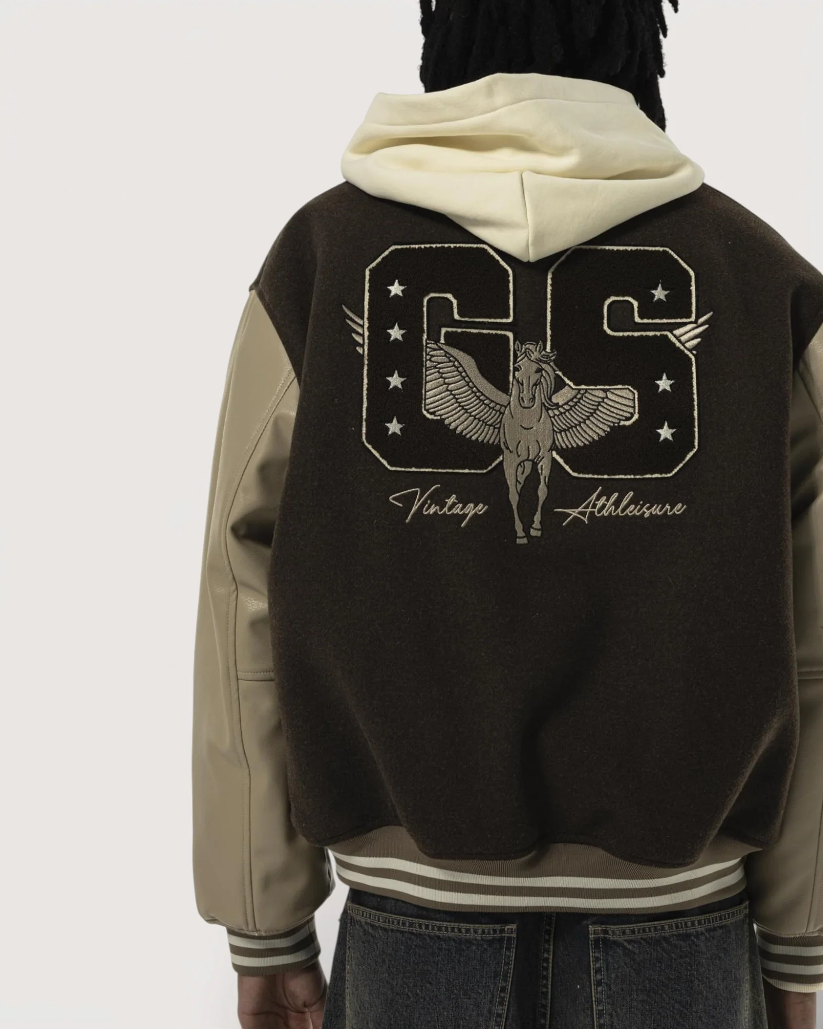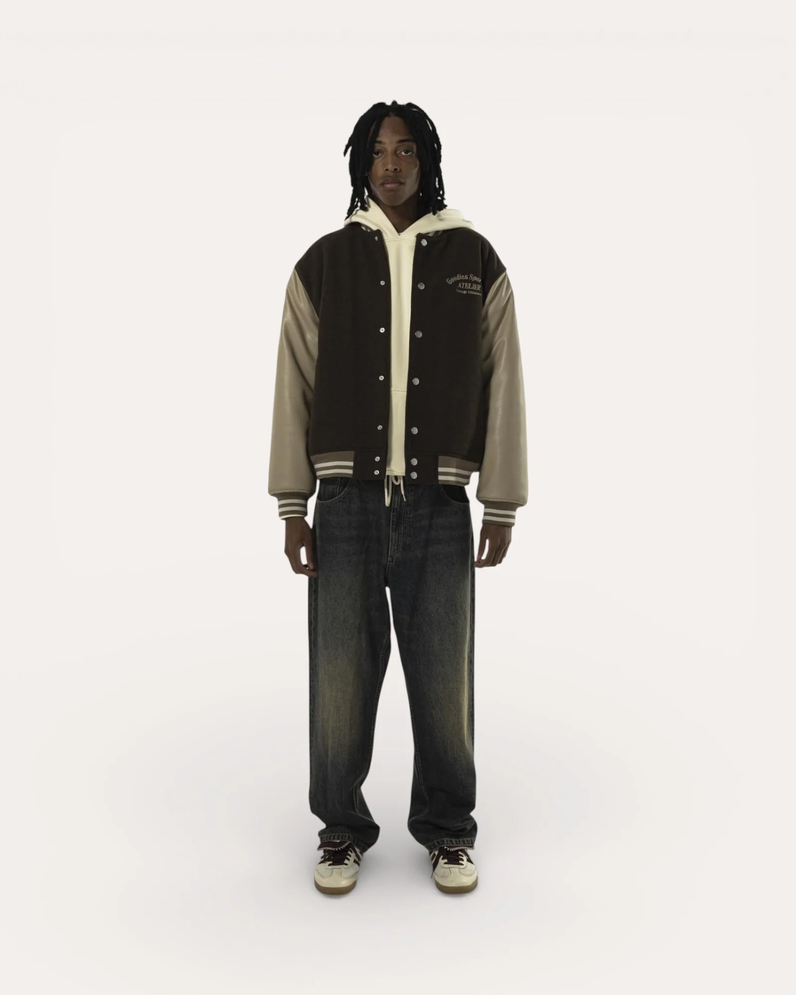 La Veste Varsity Goodies Sportive réinterprète le blouson de sport américain avec une exigence de qualité et de détails qui en fait une pièce exclusive. Son coloris Chocolate / Ecru offre un contraste élégant et intemporel, idéal pour rehausser un vestiaire masculin ou féminin.