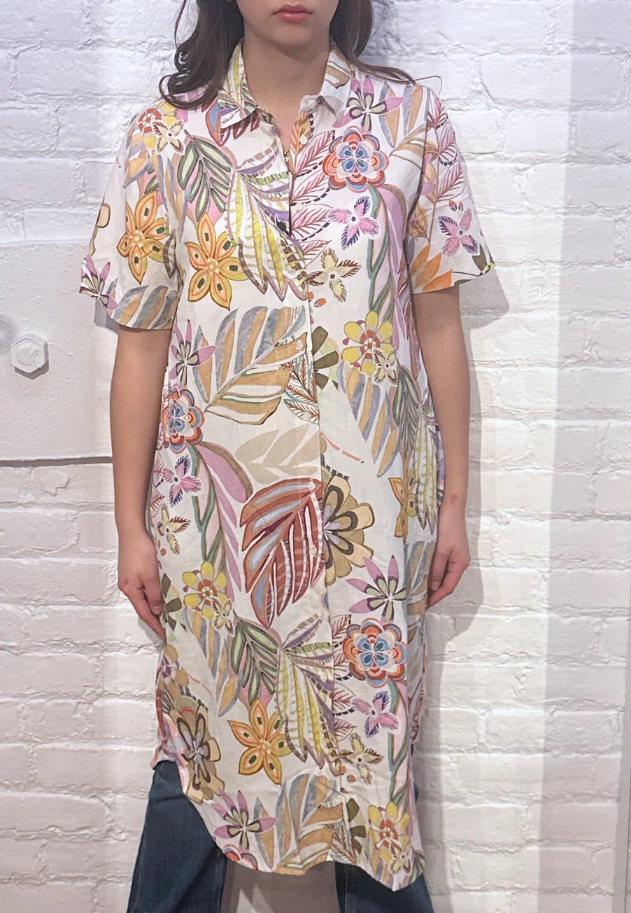 VLT’s by Valentina’s – 24-60M – Robe manches courtes de coton et lin à motif floral